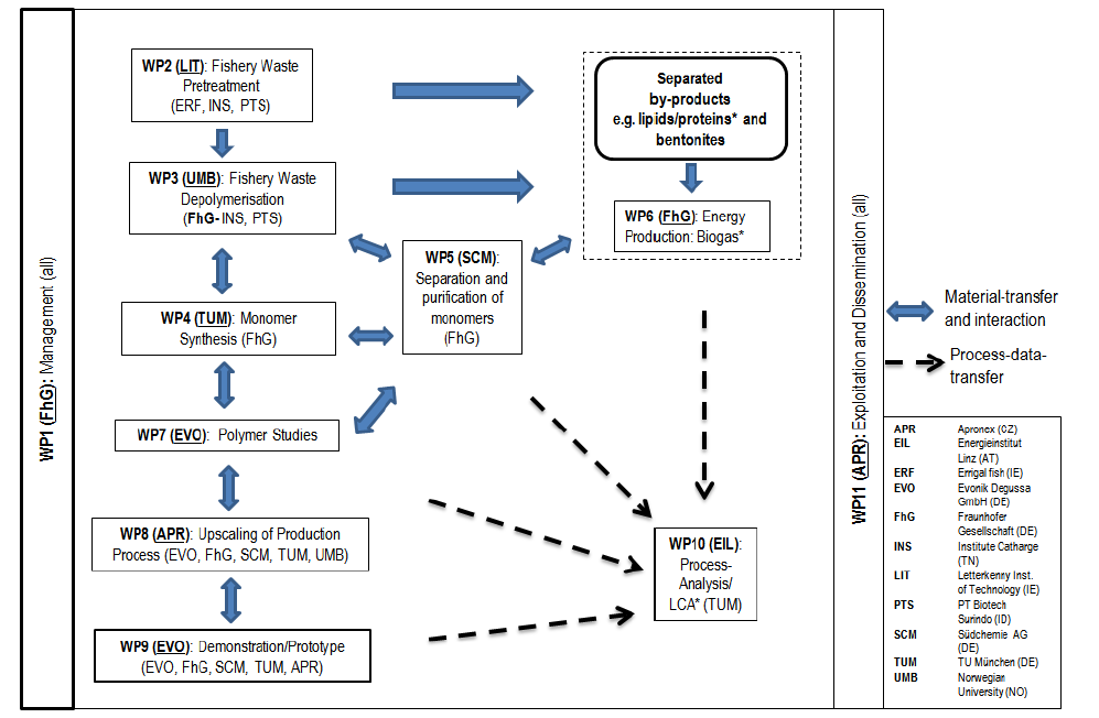 The figure below gives in a PERT-like diagram an overview of the interaction between work packages, main activities and key actors for these activities. The work package leaders are underlined and bold.